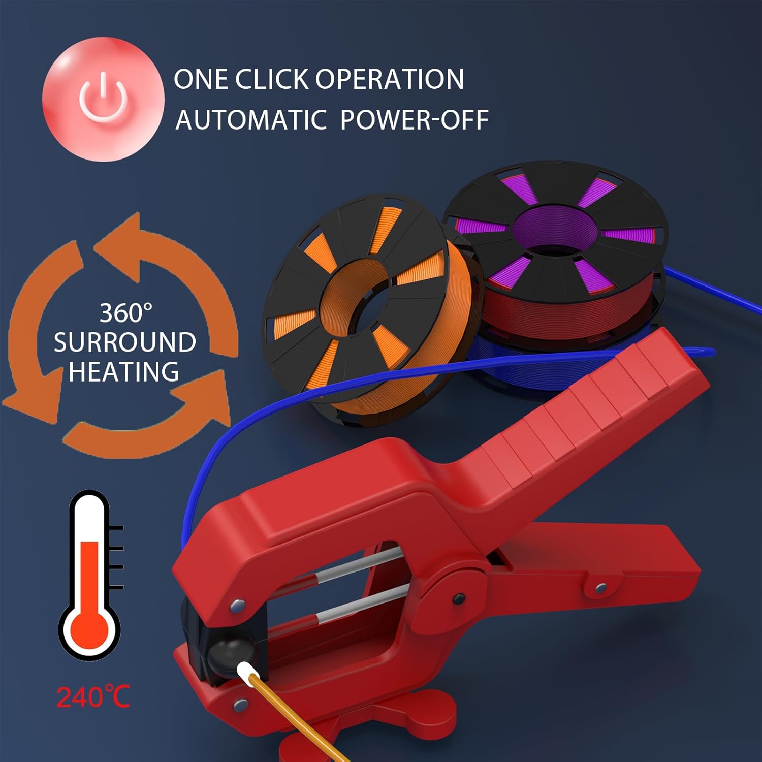 - Equipada con un módulo de calentamiento avanzado, la empalmadora de filamentos VIT SPORT alcanza los 240 °C en tan solo un minuto, ofreciendo conexiones rápidas y precisas en todo momento. Los tubos de silicona incluidos garantizan una alineación perfecta, y la fuente de alimentación de 24 V CC asegura un suministro de energía estable y fiable. El filamento conectado se puede doblar en un ángulo de 180 grados. Olvídate de las roturas de filamento y disfruta de una impresión sin interrupciones.