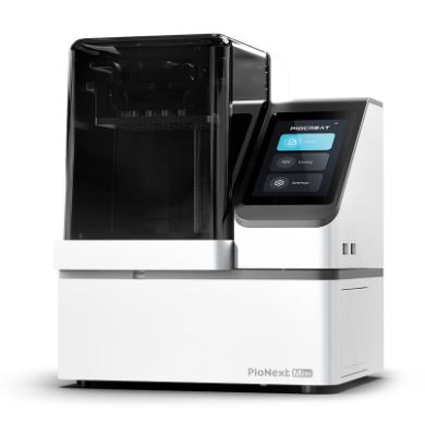 La PioNext Mini es una impresora dental 3D ultracompacta estilo maleta (200 × 170 × 230 mm) que ahorra espacio e integra el curado en un solo dispositivo, por lo que es fácil de transportar e ideal para usarla en silla.